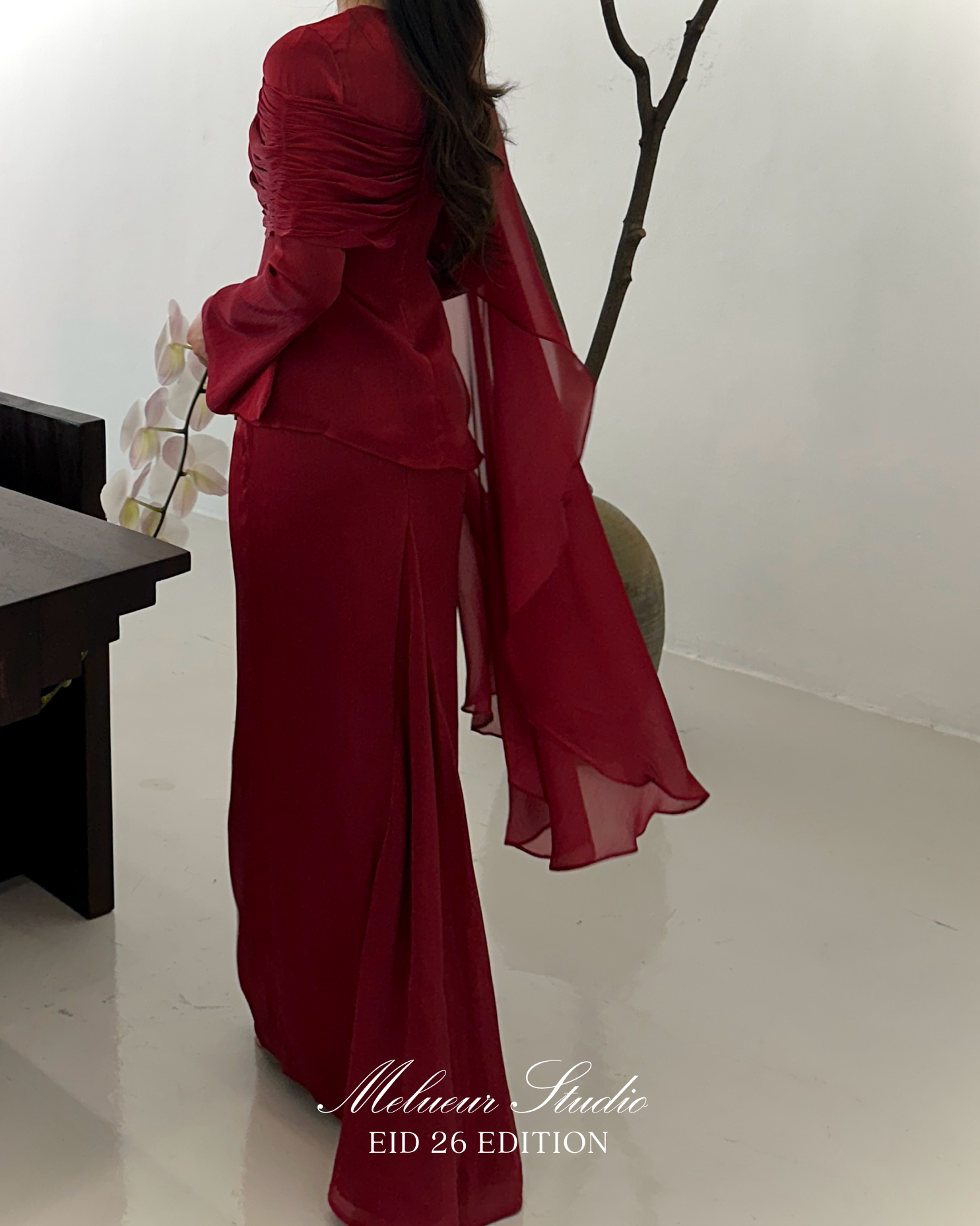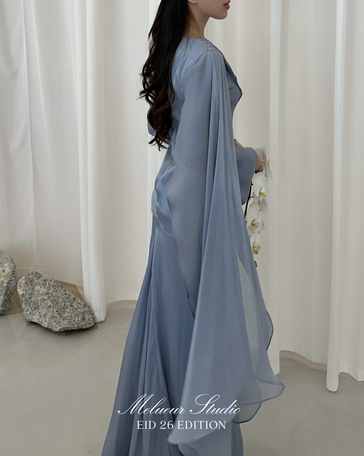 - Material : Luxurious chiffon silk with a gentle shimmer